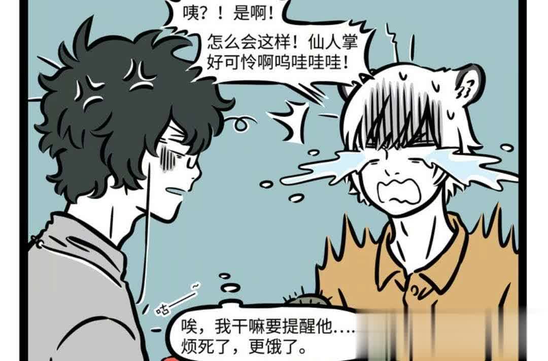 驺虞自然是找到自己的午餐,他满怀欣喜地跟白泽说,他从隔壁大爷那要来了枯萎的仙人掌,这是属于自然死亡的生命,打算和白泽一起吃。但别忘了白泽的特殊能力,他只要看一眼,便能看出一个人或者一个物品的所有属性。白泽也是气急了,他发现这仙人掌是死于隔壁大爷浇水过多,并且质问驺虞是如何定义自然死亡的,这下好了,两个人都没得吃了,而且白泽还得听驺虞哭丧。