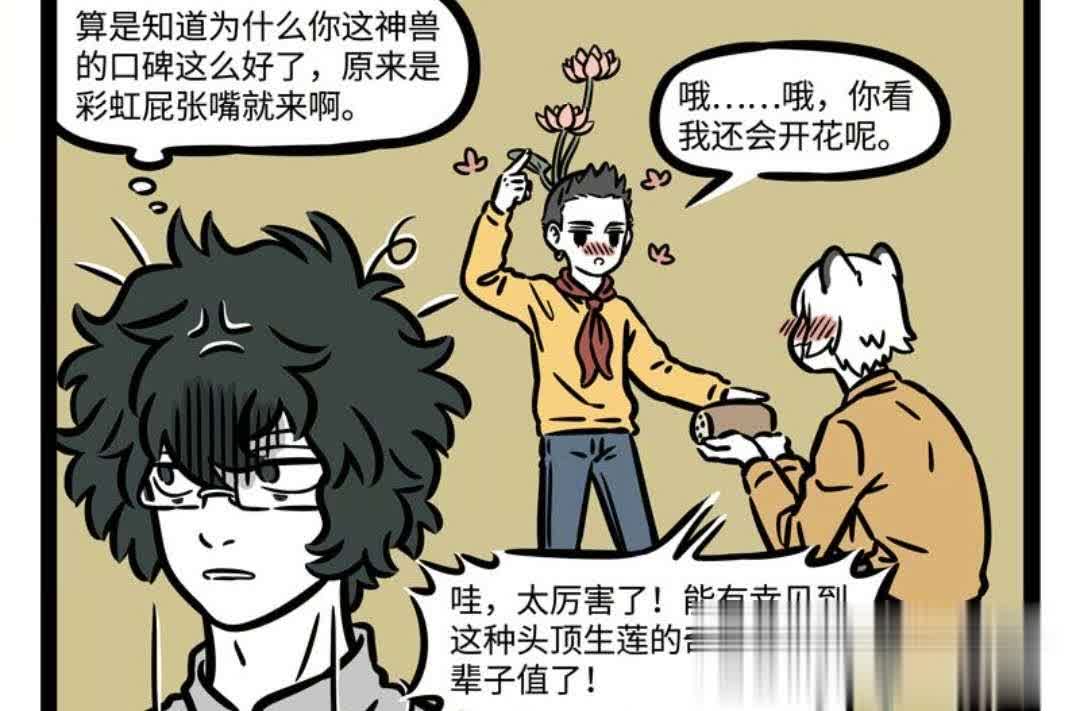 没想到驺虞被哪吒断臂饲养他的行为感动坏了,直接将哪吒与佛祖相提并论,我们哪吒藕霸也是经历过大风大浪的,什么场面没见识过,结果还是被驺虞一通彩虹屁说得害羞脸红了。本来只是自己无意识间玩的梗,没想到被驺虞夸得如此伟大,这是小菌除了藕霸捡到小龙养外,再次看到藕霸脸红。不过小菌也能理解驺虞为何如此感动,这下终于不用为吃饭发愁了,可以吃顿饱的了,你说能不感动吗。